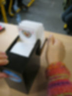 Explication de l'origine de l'image animée à travers la présentation de divers jouets optiques (thaumatrope, flip flap, zootrope, praximoscope,...). Manipulation des objets et réalisation d'un thaumatrope